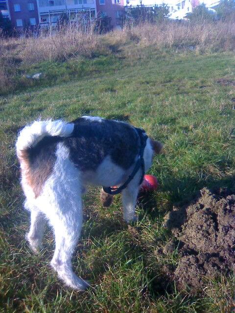 w końcu jestem terier, nie? ale pani już taka zła była ,bo wołała mnie cały czas a ja nawet nie słyszałem , no prawie nie słyszałem – tu kret wyłazi – kto by tam o piłeczce myślał
