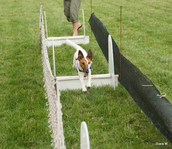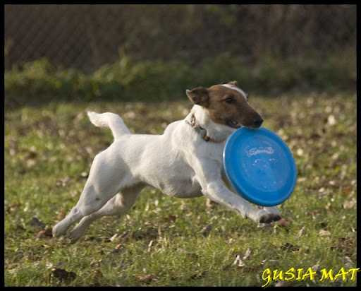 Moja foksica ogólnie ma przechlapane- czy tego chce czy nie musi byc terierem sportowym, tak to jest jak się trafi na nie do konca normalną pańcię Rejsi trenuje flyball i frisbee. Dużo bardziej kocha frisbee, ale dużo lepiej wychodzi jej flyball ( chociaż ostatnio mały biały głupek potrafi ogarnąć swoje emocje i frisbee zaczyna jej wychodzić)
